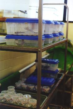Laboratory set-up for rearing flesh flies from larvae collected in the field |